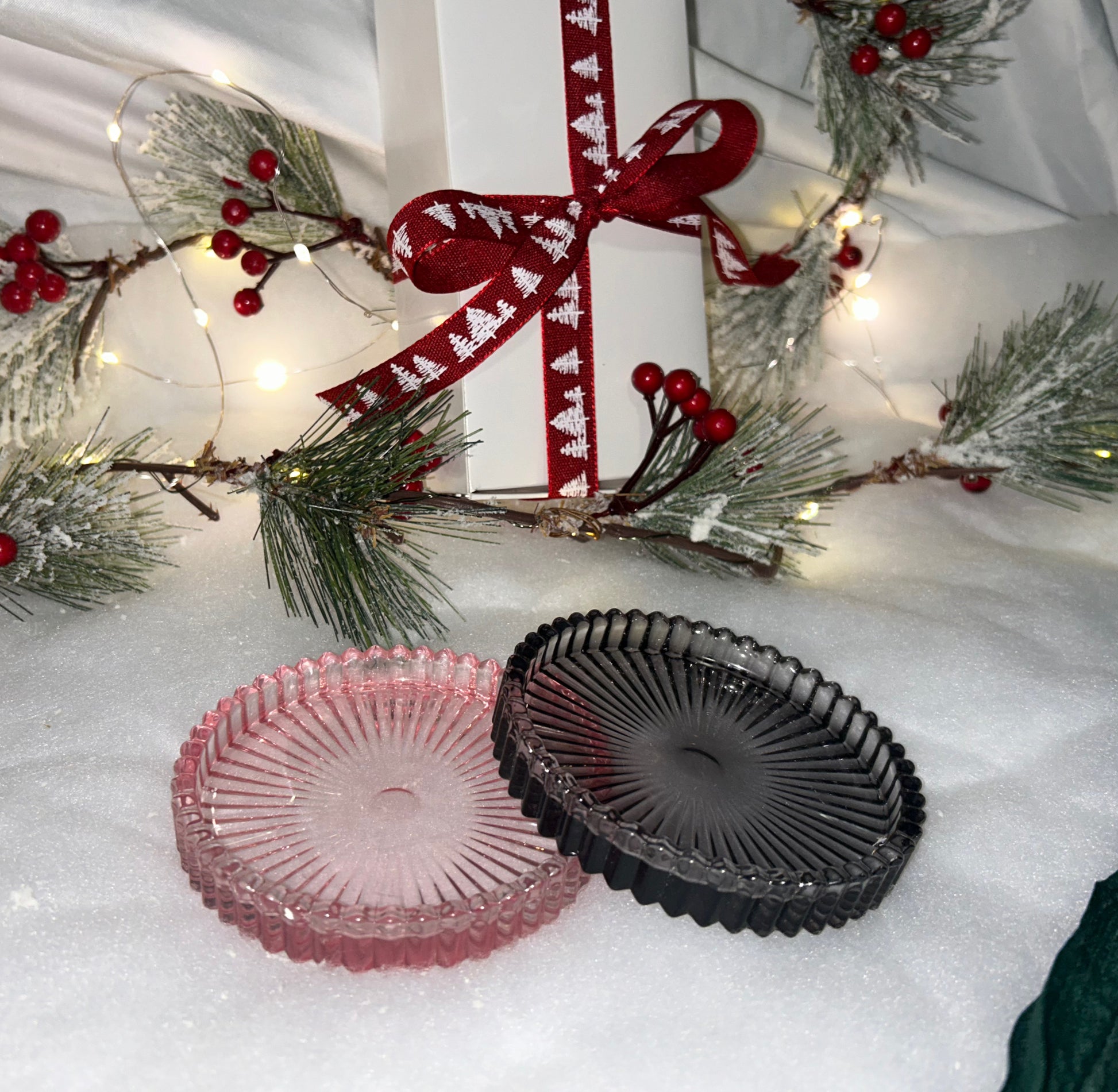 Luxurious polished finish glass candle holder perfect for adding home decor accents, making the best duo with our Deep Desires Candles for having a cozy ambience and illumination.